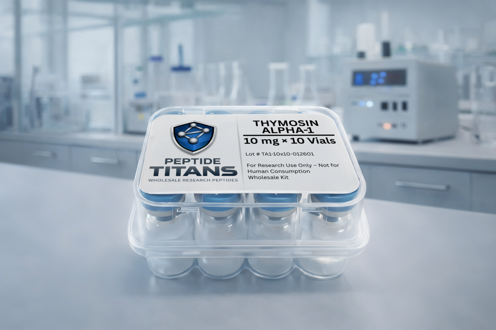 Thymosin Alpha-1 is a synthetic 28-amino-acid peptide originally isolated from thymic tissue. The peptide is N-terminally acetylated, which contributes to enhanced structural stability compared to non-acetylated analogs. Its mid-length chain provides moderate conformational stability while remaining susceptible to enzymatic degradation in biological environments. Lyophilized storage under cold, dry conditions is recommended. Protection from moisture, light exposure, and repeated freeze–thaw cycles helps preserve structural integrity and maintain analytical consistency during laboratory research applications.