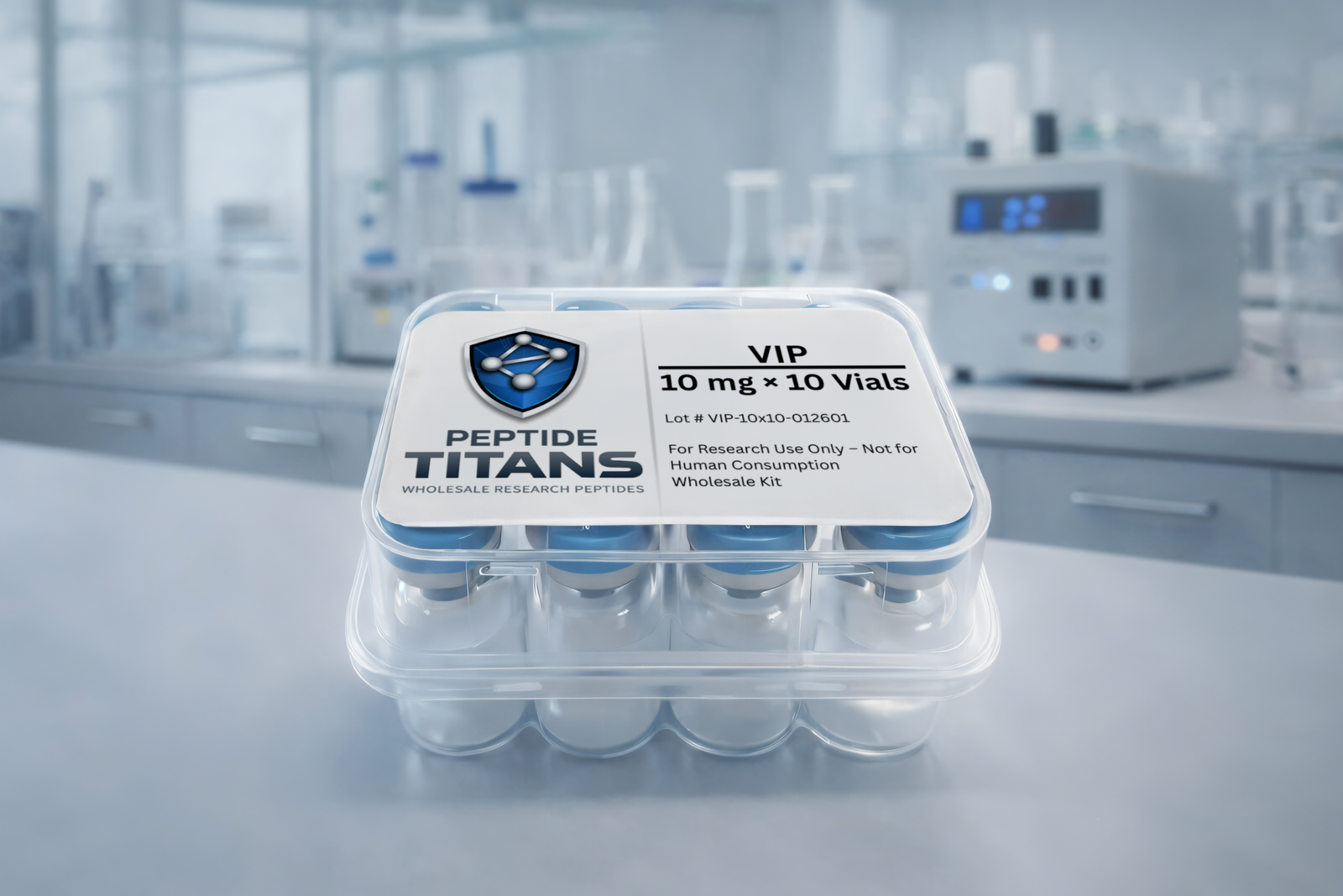 VIP (Vasoactive Intestinal Peptide) is a 28-amino-acid neuropeptide hormone characterized by a C-terminal amidation that contributes to structural stability. As a mid-length linear peptide, it is susceptible to enzymatic degradation in biological systems. Lyophilized storage under cold, dry conditions is recommended to preserve structural integrity. Protection from moisture, light exposure, and repeated freeze–thaw cycles helps maintain analytical consistency during laboratory research applications.